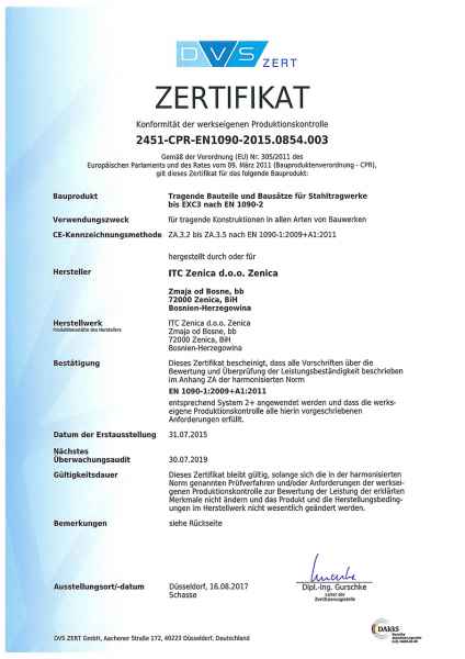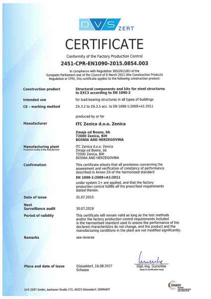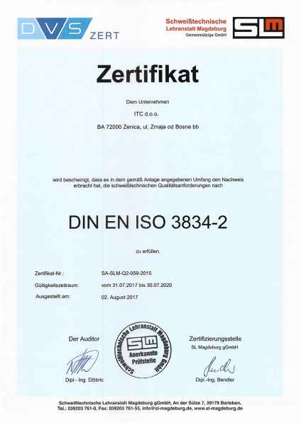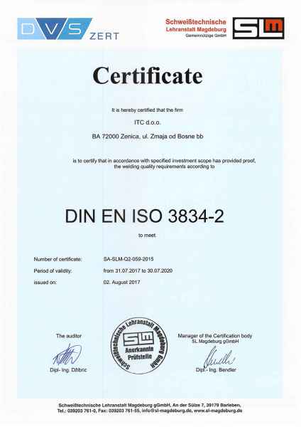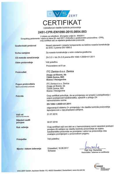 Početkom avgusta je vršena certifikacija profitnog centra Metaloprerada (PCM). Izvršena je recertifikacija i to prilikom je produženo važenje certifikata EN ISO 3834-2 do 30.07.2020. godine. Takođe je izvršeno produženje certifikata EN 1090-2 za noseće čelične konstrukcije do EX3, odnosno EN 1090-1:2009 +A1:2011 sa rokom važenja do 30.07.2019 godine.