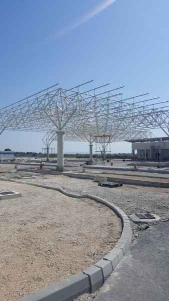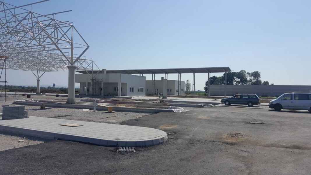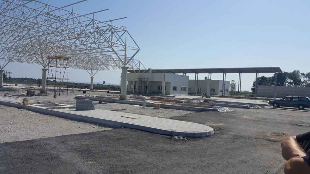 Nadstrešnica platoa graničnog prelaza je projektovana iz tri dijela i natkriva prostore vezane za centralni objekat carine i policije, kontrolu ulaza i izlaza putničkih vozila, objekat carine i policije u zoni ulaza i izlaza teretnih vozila, kao i prostor sa kolskim vagama.