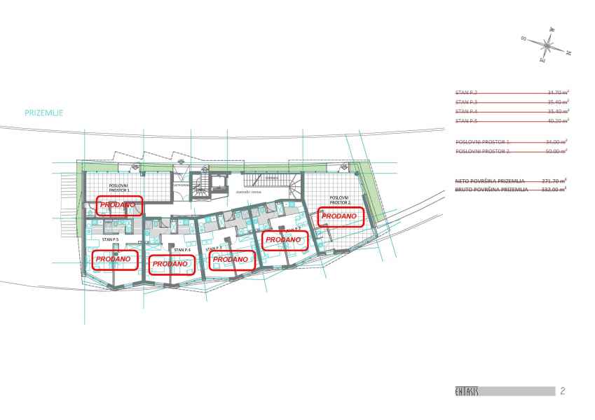 Prizemlje: 2 poslovna prostora i stambene jedinice