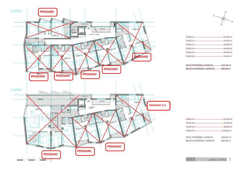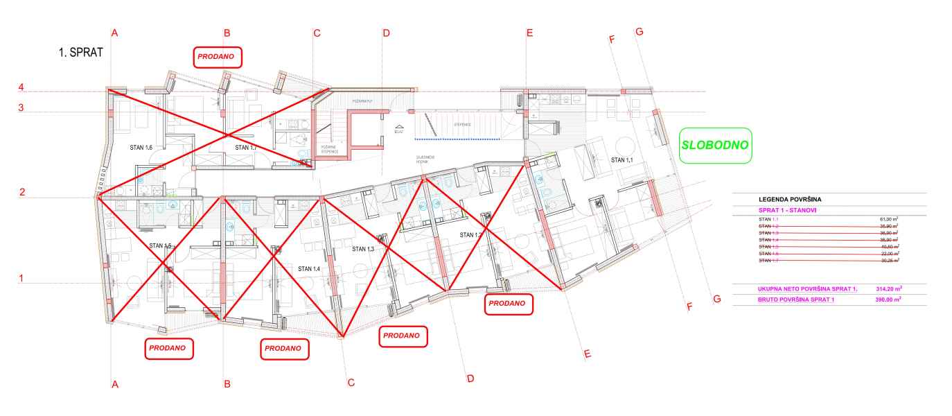 Površina stambenih jedinica od 35 m2 do 65 m2